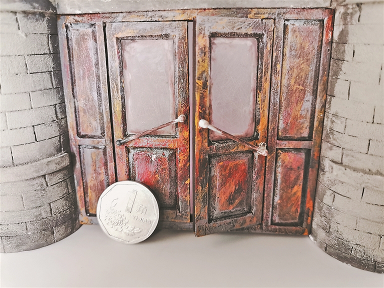 “材料越普通,越考验观察力。”王金川指着模型解释道。为了让建筑更真实,他必须研究每一处细节:向阳面的砖块会因日晒褪色,背阴处则因潮湿泛出碱花,角落“长出”的青苔、砖缝里的积灰、瓦片上的裂痕,这些都要精准还原。“建筑不能死板地复制,得有‘生活气儿’。”王金川说。