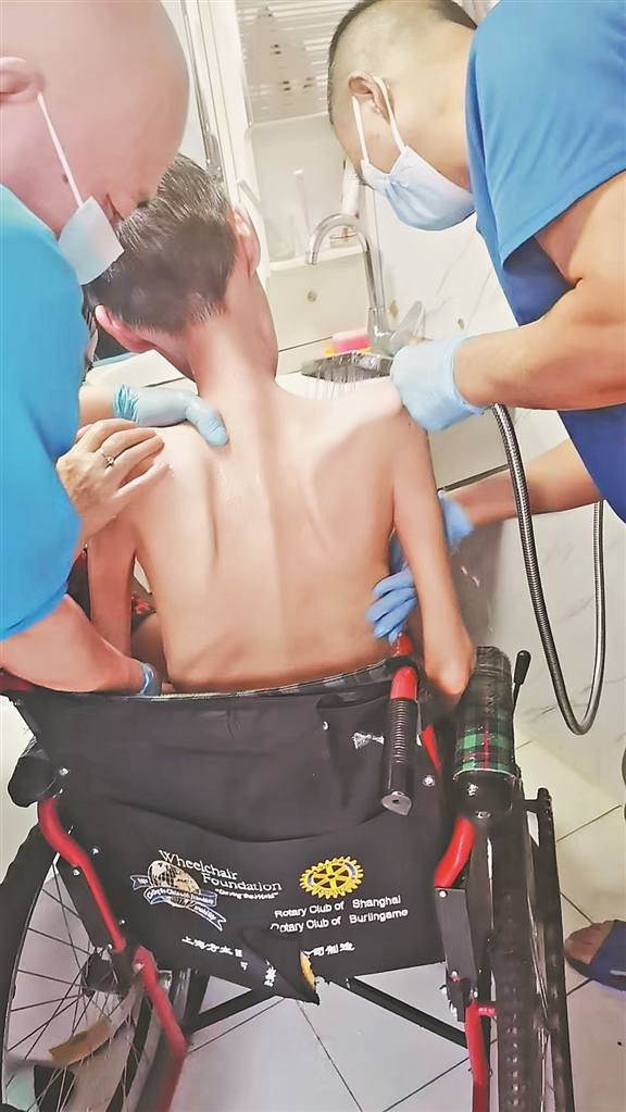 助浴工王天旭是此次为兄弟俩服务的助浴人员之一,从业3年多的他经验比较丰富,“我之前服务的对象大多是老年人,这次残联做了居家托养服务项目,我又开始为残疾人服务。”王天旭告诉记者,为残疾人服务要比为老年人服务更加用心,因为很多残疾人的身体更加不方便,“就像给兄弟俩洗澡的时候,他们的皮肤因为常年卧床特别地嫩,力度就一定要小,这样就需要仔细地多洗几遍才能洗干净。这份工作需要细心、耐心和爱心,才能更好地为残疾人服务。”