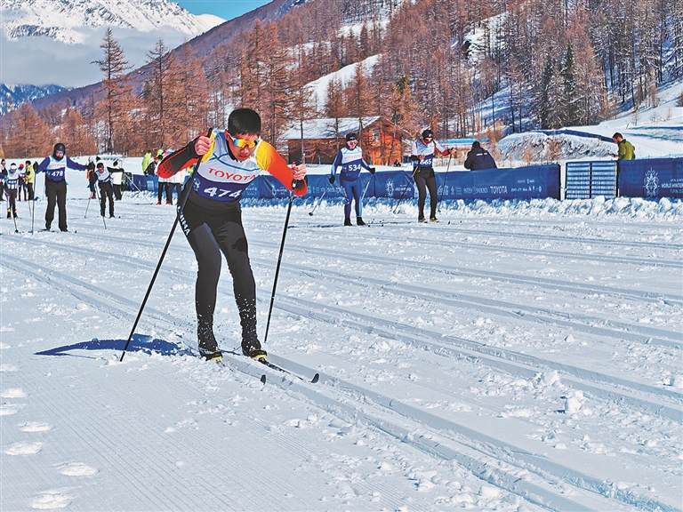 在赛场上,张义全力以赴,凭借扎实的训练功底和顽强的毅力,在50米越野滑雪项目中夺得铜牌,在100米越野滑雪项目中斩获金牌。当国歌响起,五星红旗缓缓升起,张义心中满是骄傲。“我当时特别激动,就想着一定要为祖国和家乡争光。”张义说道。