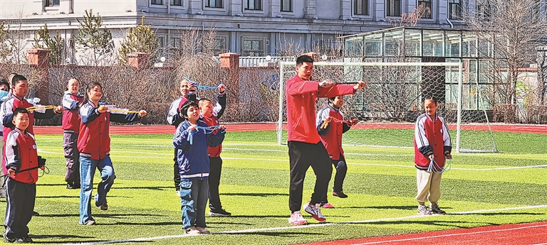“升旗!”每周一清晨,张义挺直1米9的高大身躯走在方阵最前列。特教学校的孩子们发现,曾经沉默的学长变了——他会手把手教叠被子,帮系扣子。平日里,张义会在课间带着同学们一起运动,教他们跑步、跳远的技巧。“张义哥哥很厉害,我们都很崇拜他,他教的方法也很有用。”一位同学说道。