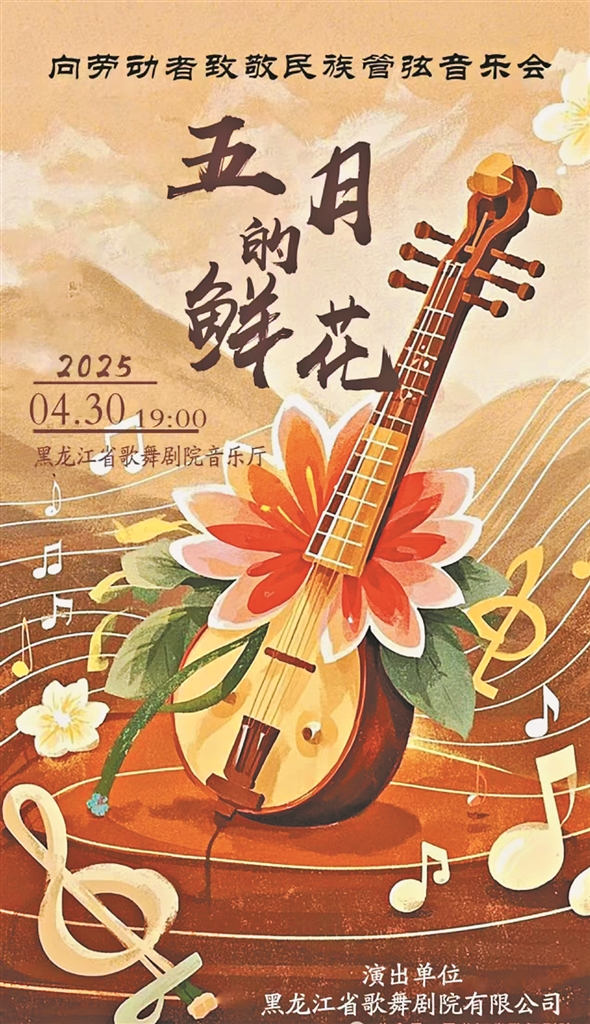 由省歌舞剧院有限公司匠心策划的《五月的鲜花》向劳动者致敬民族管弦乐音乐会,将于4月30日19时在省歌舞剧院音乐厅启幕。这场音乐会由省歌舞剧院民族乐团携手附属青少年民族管弦乐团共同呈现。原创首演曲目《月照上京》以灵动音符为笔,绘就民族音乐创新的瑰丽画卷,奏响时代新声;经典作品《山水醉了咱赫哲人》《大庆子》,用悠扬旋律讲述龙江大地上的动人故事,传递深厚的地域文化底蕴。一首首充满民族特色的音乐作品,宛如激昂颂歌,致敬奋斗者的璀璨荣光。