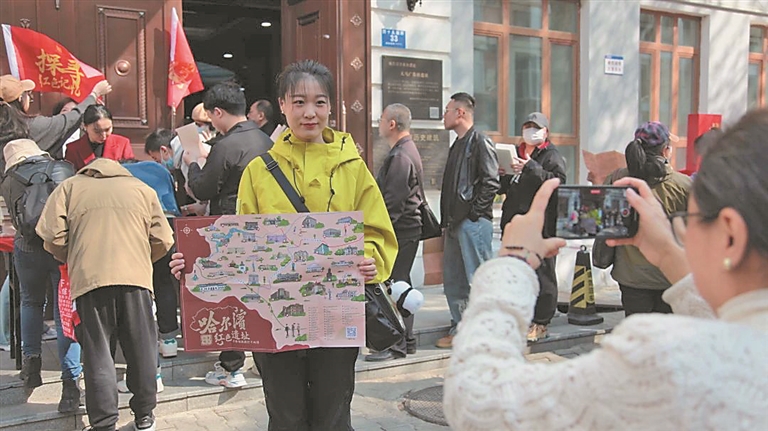 从南岗区特意乘车赶来的“90后”赵女士表示,“感谢哈尔滨市博物馆帮我们梳理出这么多标志性的遗址,而且地图设计独具匠心,不仅标出了遗址位置,还规划了三条主题路线。”山东游客赵强一家,是意外遇见的这次活动,“我们刚参观过哈尔滨市博物馆,非常棒。接下来,我想带着父母和孩子尽可能地多看一看地图上的红色遗址。”