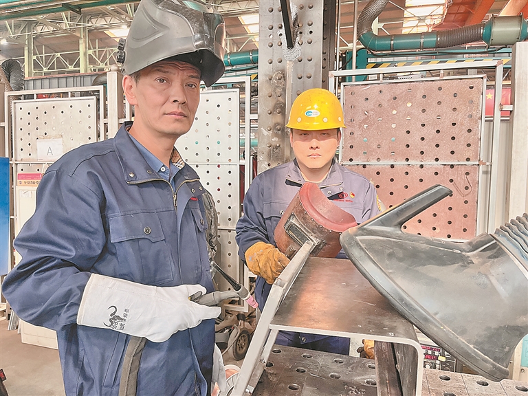 今年42岁的乔树志是龙江技术能手,也是冯世毅的徒弟之一。“师傅就像我们的一面旗帜,跟他在一起我们不仅技术上精进了,工作方式也改进了。以前我们只知道埋头苦干,现在也懂得了研发,并申请了很多专利项目,这些都是加入工作室后和师傅学到的。还有就是他的精神,我记得那年我们厂里的一次比武,其中有一个两面焊,我仰着焊不行,冯老师就陪着我加班,教我怎么弄。”说起过往的点滴,乔树志很感慨,同时也高兴地告诉记者,那年的比武他取得了第一名的好成绩。如今,乔树志带徒弟时,也会像冯世毅一样耐心,把这种刻苦钻研、积极创新和不畏艰难的精神一代一代传下去。