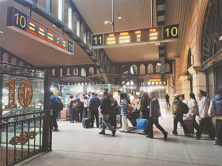 29日上午,记者来到哈尔滨火车站二楼候车大厅看到,小长假临近,铁路客流已开始上涨。