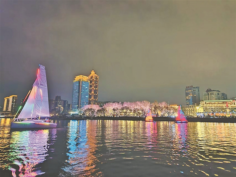 据了解,当晚7时至8时,进行2025年帆船秀首秀,只见它们一会儿排队行驶,一会儿散开航行,让市民和游客忍不住赞叹美丽。五一假期期间,每天也都有精彩的帆船秀,时间为13时30分到15时和19时到20时,地点为防洪纪念塔附近江域。“我们的帆船秀每天有10到15艘船不等,白天为帆船秀,晚上为灯光秀。随着天气逐渐转暖,帆船秀时长也会相对延长。”工人文化宫场馆运营部部长黄琳琪告诉记者。五一假期期间,诚邀市民和游客朋友一起欣赏。
