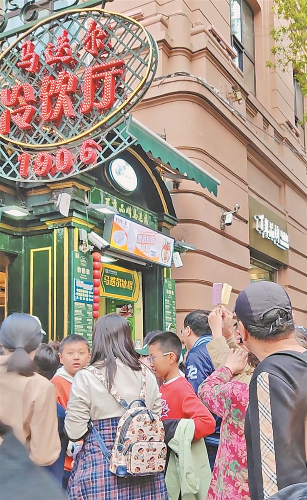 “我们是从广州飞来的,攻略上说‘没吃马迭尔等于没来哈尔滨’。”大学生小林举着马迭尔冰棍与欧式建筑合影。市民李先生则感慨:“我年轻时这儿就这么火,现在看到年轻人仍喜欢老字号,心里暖和。”