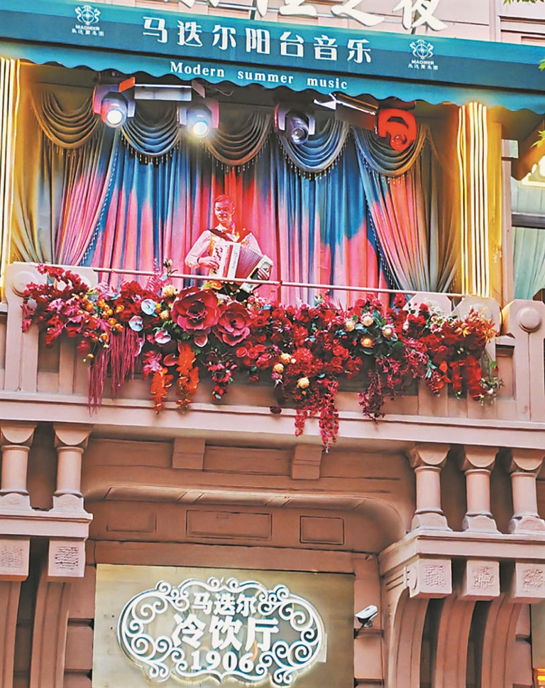 傍晚时分,夕阳的余晖洒在中央大街的百年面包石上,在马迭尔宾馆的欧式阳台,艺术家手中的手风琴悠扬的旋律一响起,整条大街瞬间化作露天音乐厅,不同语言、不同肤色的观众不约而同地停下脚步,仰头望向那座承载着音乐记忆的古老阳台。
