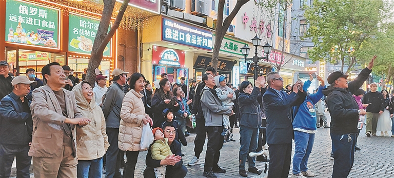 从上海来的大学生林悦和闺蜜原本只是来打卡网红景点,却被阳台音乐“圈粉”了。“那个亚美尼亚音乐家的木笛演奏太震撼了,音色空灵得像从山谷里飘出来的。”她用手机拍摄了演出视频,“我要发到网上,让更多人知道哈尔滨还有这么棒的音乐文化。”