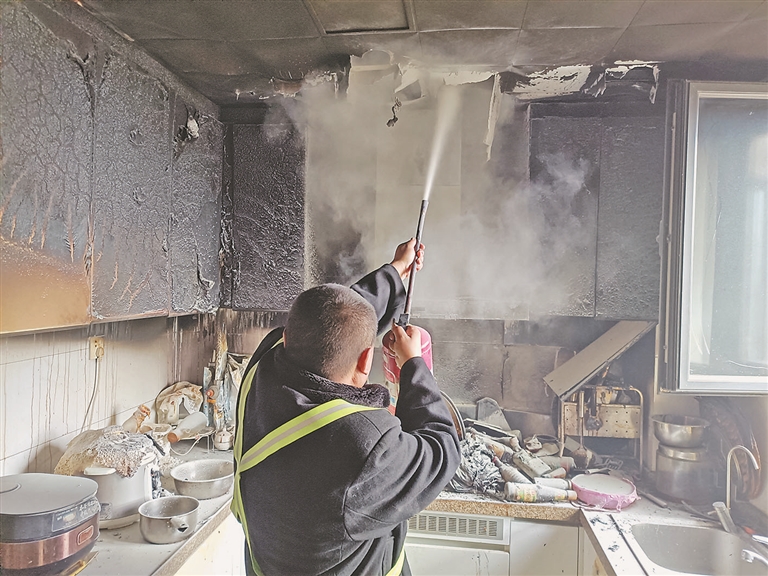 保安拎灭火器飞奔 9分钟扑灭