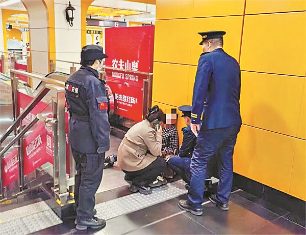 记者从哈尔滨地铁集团了解到,4月29日17时30分,在地铁医大二院站内,值班站长王志鑫突然听到站厅安保员王妮娜呼喊:“值站,扶梯口有乘客身体不适,请求支援!”他立刻抄起急救箱飞奔到扶梯口看到,一名女乘客捂着心脏,面色苍白、呼吸急促,看起来很不舒服。王妮娜坐在地上将女乘客的头放在腿上,不断地安抚道:“别担心,先躺一下,能舒服些。”