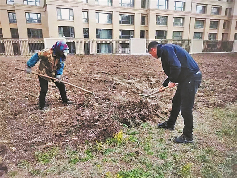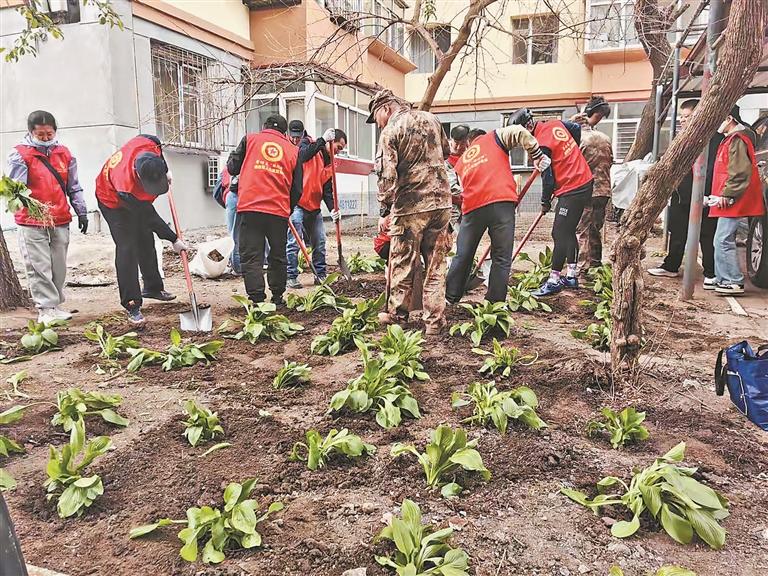 生活报讯 (记者于海霞) 近日,哈平路街道安装社区,居民们正热火朝天地改造小区一角的荒地,未来,这里将鲜花盛开变成一处社区“微花园”。