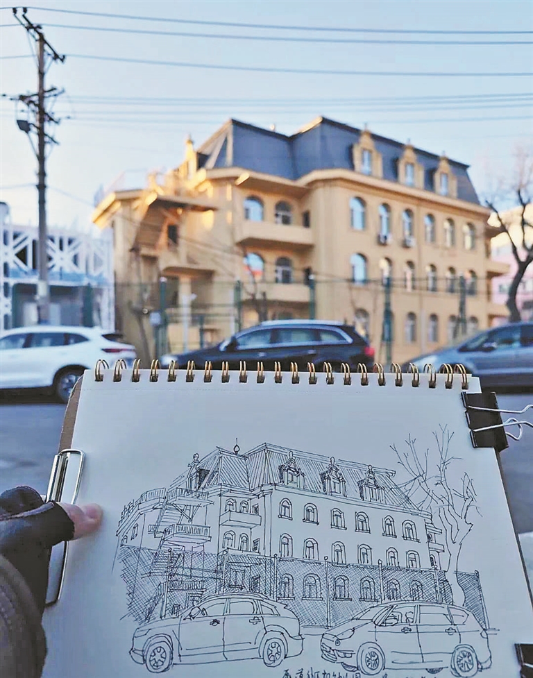 如今,赵文铭的速写本已积攒了十几本,他已经画完了哈尔滨的100多栋老建筑,这些用碳素笔绘制的城市老建筑肖像,不仅是他个人艺术探索的见证,更成为记录哈尔滨城市变迁的珍贵档案。他也希望通过自己的故事激发更多美术爱好者拿起画笔,一同描绘家乡的欧陆风情,让艺术走进大众生活,传递对生活和家乡的热爱之情。