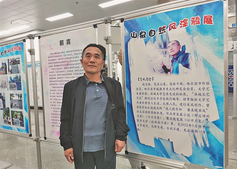 重拾画笔不到一年半,2023年9月,赵文铭就成功举办了个人画展——“山泉自然风涂鸦展”。