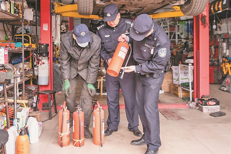 在排查整治过程中,民警随机抽查从业人员消防常识掌握程度和消防器械操作使用能力,对发现的薄弱环节有针对性地进行指导,手把手传授安全用电、用火、用气技巧,以及灭火器、消火栓等消防器材的正确使用方法。