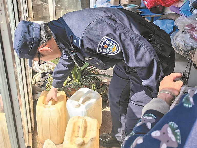 4月30日,平房分局平房镇派出所民警在黎明村走访时,发现村民徐某才家中仓库内违规存放柴油,使用塑料桶装储且无安全措施。经调查,徐某才供述,其为方便钻井车作业,私自将车内的柴油抽至塑料桶储存。目前,平房分局依据《中华人民共和国治安管理处罚法》第三十条之规定,对徐某才处以行政拘留5日的处罚,并扣押全部非法储存柴油。