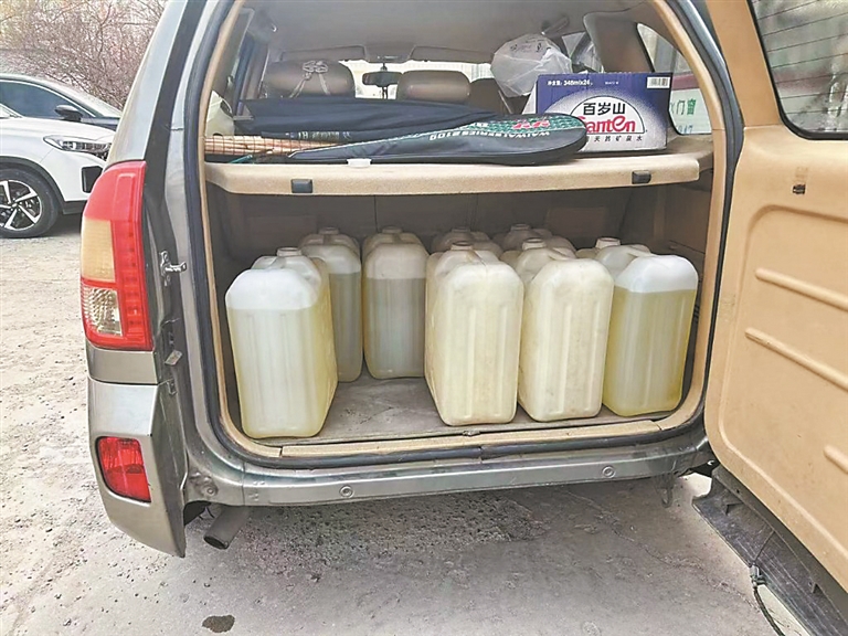 4月27日,平房分局治安大队联合平房镇派出所根据群众举报线索,在平房区会宾家园一栋居民楼巡查时,发现一辆奇瑞瑞虎SUV后备箱存放大量装有95号汽油的塑料桶及空桶,无任何安全防护措施,严重威胁周边居民安全。