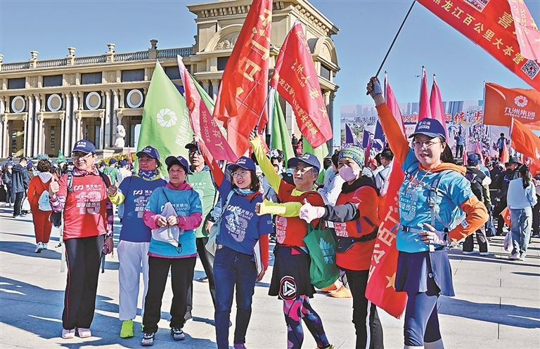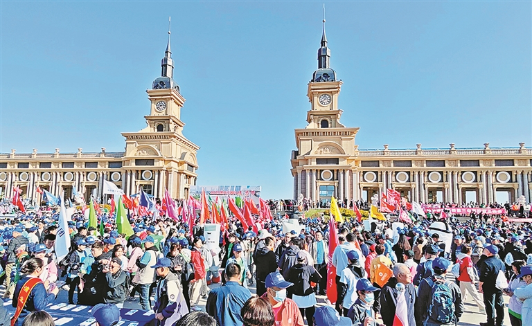 7时30分,来自各地的徒步爱好者准时集结,在组委会工作人员引领下有序站位。在群力音乐公园广场,人潮涌动、万人齐聚,徒步队伍的热情足以点燃冰城。
