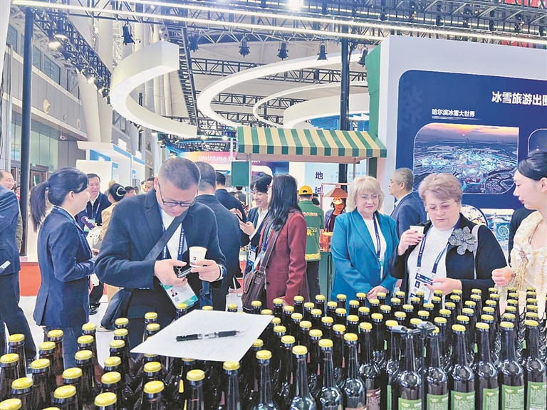 在本次哈洽会马迭尔文旅集团展位中,不少参展商对马迭尔带来的精酿啤酒产生了极大的兴趣,表现出较强的合作愿望。马迭尔集团黑龙江区域大客户总经理邱冬梅告诉记者,集团现有浙江衢州和哈尔滨松北两个生产基地,拥有2家直营店、4家加盟店、76家经销商和39763个终端零售点。目前,马迭尔的产品已进入多个知名旅游景区、文化街区,销售覆盖全国20余个省市。
