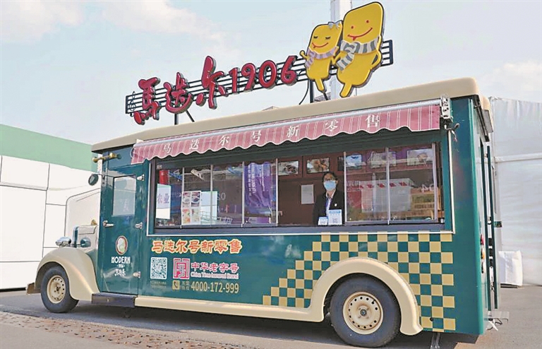 展区中间,绿色的360°环形岛台围满了参观者,马迭尔20余款经典美食和特色新品悉数登场。在省商务厅老字号嘉年华展区和省文旅厅冰雪主题展区中,马迭尔也作为本地代表入驻,成为一道靓丽的风景。此外,在哈尔滨国际会展体育中心广场上,马迭尔股份将复古范十足的墨绿色销售车也进行了现场展示。活动现场,马迭尔股份公司精心筹备了4场推介活动,通过企业介绍、明星产品推介、趣味互动问答等环节,让在场嘉宾深入了解马迭尔的品牌魅力与产品特色。