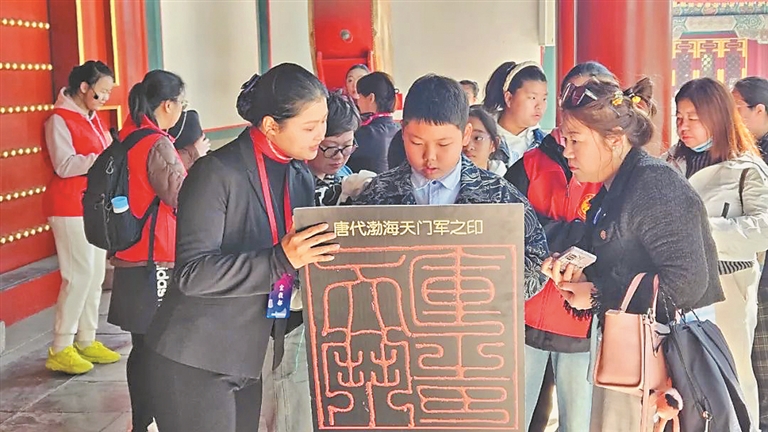节日当天,哈尔滨市博物馆还开展了一场名为“寻宝千年·听历史的声音”亲子考古营活动,15组家庭反响热烈,玩得十分尽兴。记者看到,市博物馆的讲解员先带领亲子家庭参观了哈尔滨文物馆,并为大家详细讲解了“一刀平五千”“大定通宝”等代表性文物的历史背景和文化价值。
