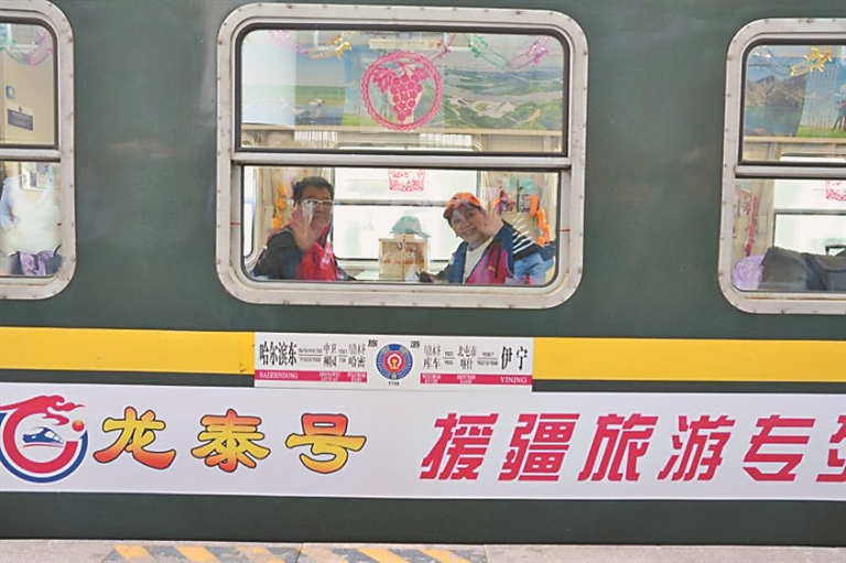 生活报讯 (记者栾德谦) 21日13时12分,在哈尔滨东站,680余名游客登上了开往新疆方向的Y64次“龙泰号”援疆银发旅游专列,驶向新疆阿勒泰地区。据悉,这是今年中国铁路哈尔滨局集团有限公司(以下简称哈尔滨局集团公司)开行的首趟“龙泰号”援疆银发旅游专列。
