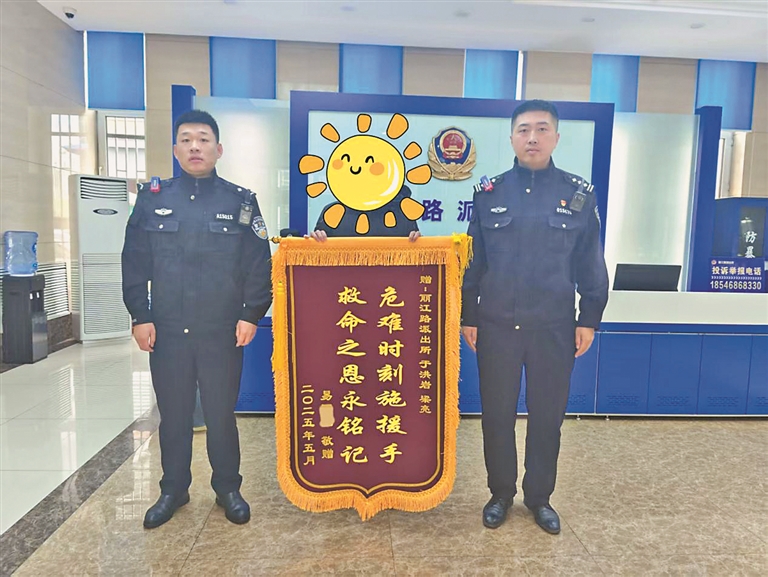生活报讯 (记者黄迎峰) 近日,受救男子易先生来到哈尔滨市公安局道里分局丽江路派出所,向救人民警梁亮、辅警于洪岩表示感谢。民警梁亮表示,这都是他应该做的,当时没想自己是否危险,和于洪岩就想把人救回来,换成其他同事也会这么做的。
