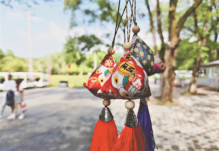 第一重——抽奖品。为满足人们“起早踏青”的需求,景区将把开园时间从早上8点提前到早上6点。端午节当天,景区检票口处设置抽奖箱,前100名入园的游客有机会抽取荷包、五彩绳、“小鹿专属粽子”等礼品。其中,“小鹿专属粽子”不仅是游客的“限定礼物”,更是梅花鹿的“限定美食”,在与鹿互动时就派上用场了。