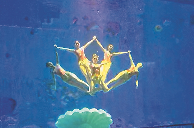 同步焕新的水舞秀,则以全新阵容及全新原创高难度动作惊艳亮相。五位国内外顶级水舞表演艺术家化身“冰海芭蕾舞者”,在冰海深处展开巨型蝴蝶羽翼,与美人鱼共舞“海底圆舞曲”,演绎浪漫唯美的“水中倒影”“极光之翼”“心心相印”等首创新动作。