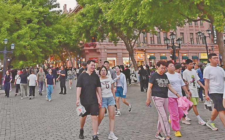 17时许,中央大街已人流如织,很多外地游客和市民手持纸葫芦,腕戴五彩绳在百年老街拍照。“从小都是吃肉粽子、咸粽子,这次在哈尔滨尝到了蘸着白糖吃的甜粽子,这个感觉就很奇妙。听说明早在松花江边有龙舟比赛,打算过去凑凑热闹,看看南北方赛龙舟有没有什么不同。今年在哈尔滨过端午节,同样有家的感觉。”来自江苏的游客吴先生告诉记者,全家老小5口人来哈尔滨避暑消夏,正好赶上端午节,也体验一下北方与南方的不同感受。