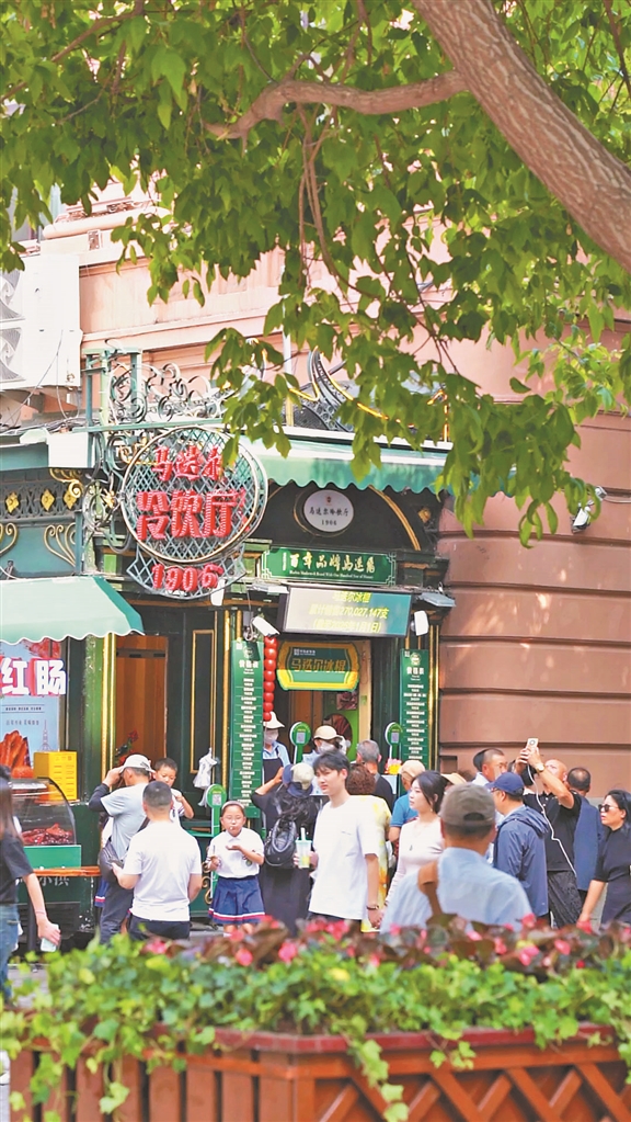 生活报讯(记者 李楠 牛婷婷) 端午小长假期间,哈尔滨中央大街人头攒动,马迭尔冷饮厅门前排起长队。市民游客悠闲地品尝面包、“乌呖特嘎”俄式盘肠及新品“心太软”三明治冰淇淋,还纷纷手举冰棍拍照留念,百年老字号食品成节日消费热点。记者走访发现,马迭尔冰棍已不仅是消暑零食,更成为哈尔滨旅游的标志性体验。