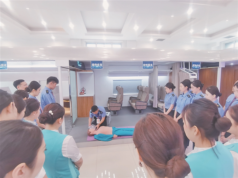 生活报讯 (记者栾德谦 文/摄) 暑运临近,黑龙江省中国铁路哈尔滨局集团有限公司哈尔滨客运段为提升客运服务质量,开展专项培训。