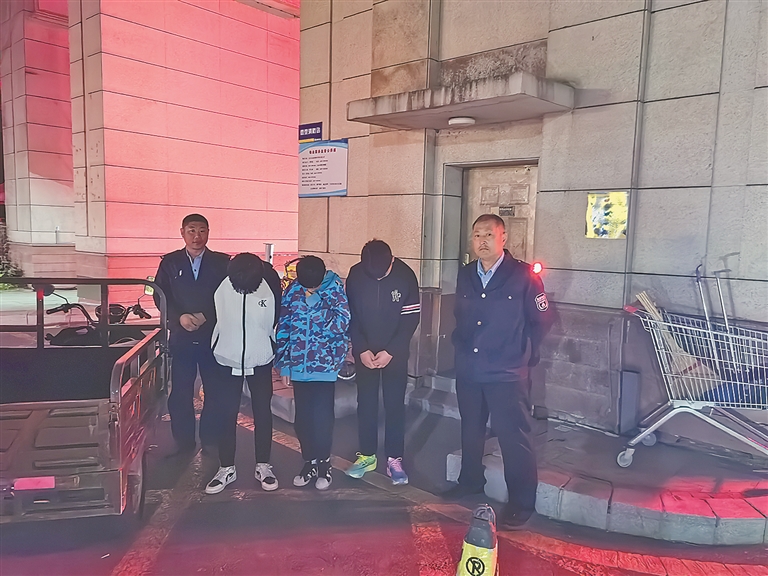 据程晓光介绍,事发当晚,小区安全主管范世杰带着保安郭振兴、孔祥维在小区巡逻时,接到监控值班人员的电话,称在监控里看见一名男子在停车场内穿梭,时不时拉拽车门,行为十分可疑。范世杰立即带着保安抵达现场,为避免引起可疑人员警觉,他和保安保持着适当距离,悄悄从不同方向进行包抄,同时向辖区派出所报警。此后,三名可疑人员同时出现,对车门进行拉拽,范世杰等人果断出击,迅速将嫌疑人制服,辖区派出所民警随后赶到现场,现场搜查出3部手机、一把20厘米长的管制刀具。