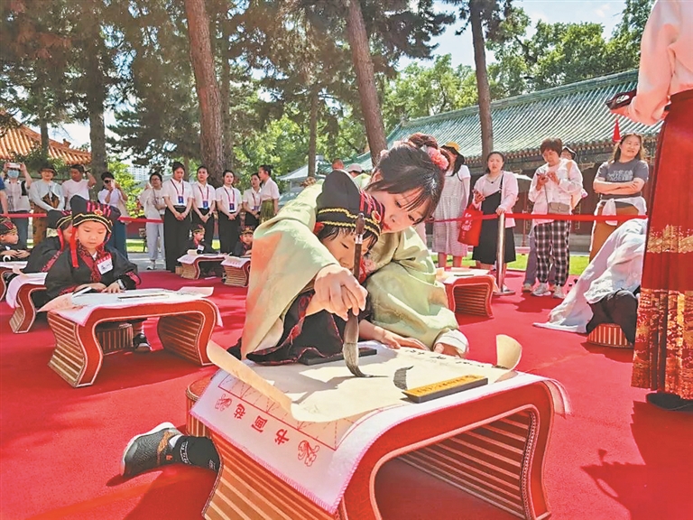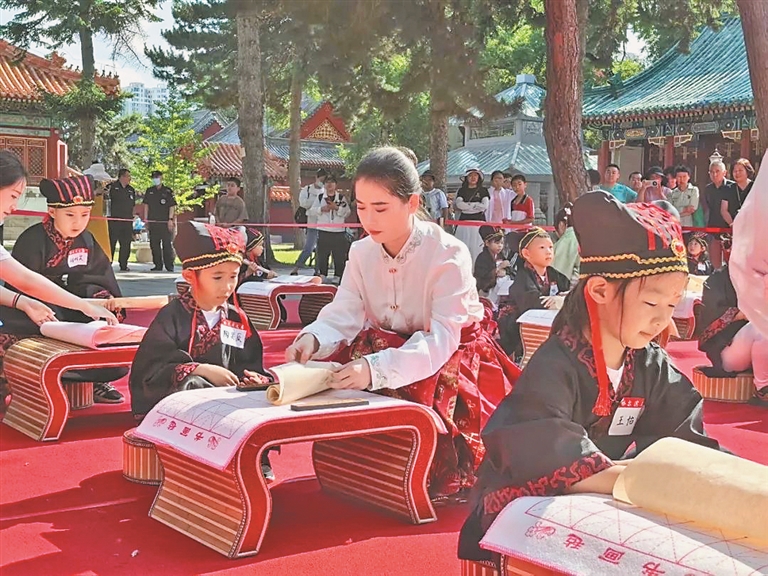 生活报讯 (记者王雪莹) 朱砂点智启蒙心,执笔敬书立人生。近日,黑龙江省民族博物馆(哈尔滨文庙)面向学龄前儿童,举办了多场传统开蒙礼体验活动,百余萌娃身着汉服,举行了庄严而温情的“人生初礼”。