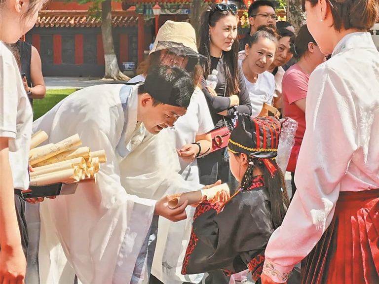 记者了解到,“开蒙”又称“破蒙”,是中国古代“人生四礼”之一,寓意着孩童告别蒙昧、开启智慧,迈向求知之路。哈尔滨文庙的“开蒙礼”已连续举办多年,已成为黑龙江省民族博物馆的特色品牌文化活动,以“沉浸式”体验的方式引导儿童“识礼、知礼、明理”,在传统礼乐中感知中华优秀文化的魅力,增强文化自信。
