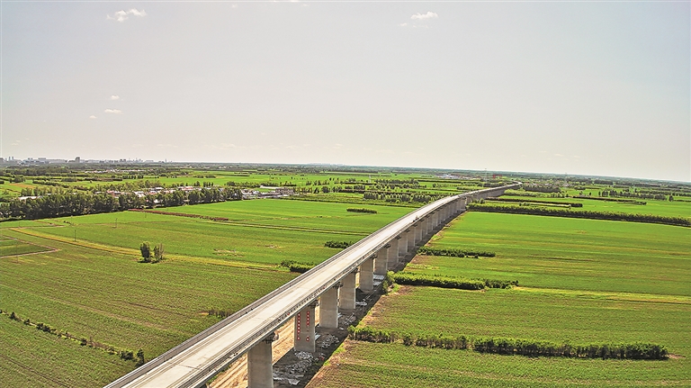 记者从铁路部门了解到,跨222国道特大桥全长35.41公里,是哈伊高铁(哈尔滨至铁力段)重难点控制性工程。哈伊高铁是我国“八纵八横”高铁网京哈—京港澳通道的延长线,是我国在建最北方、纬度最高、首条穿越多年岛状冻土区的高速铁路。