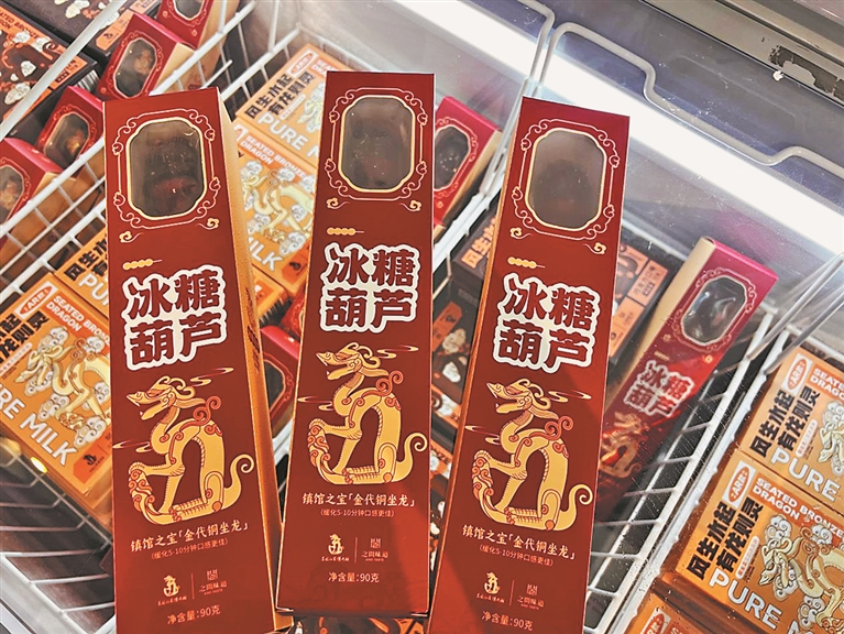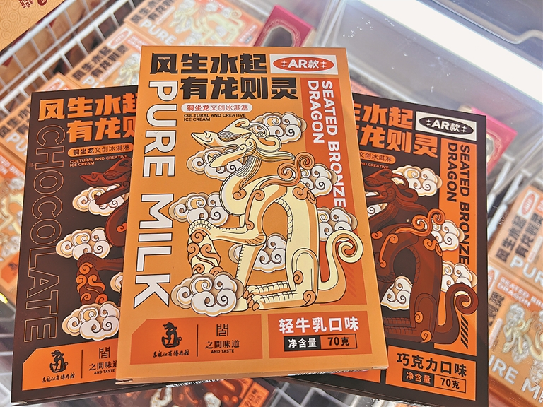 在美食界,铜坐龙还和各种各样好吃的组成了“搭子”。像月饼、糖葫芦、冰淇淋、会发光的棒棒糖……每款新品上市时都可谓“龙”重登场,主打让文物“甜”进生活,让历史“萌”化舌尖。