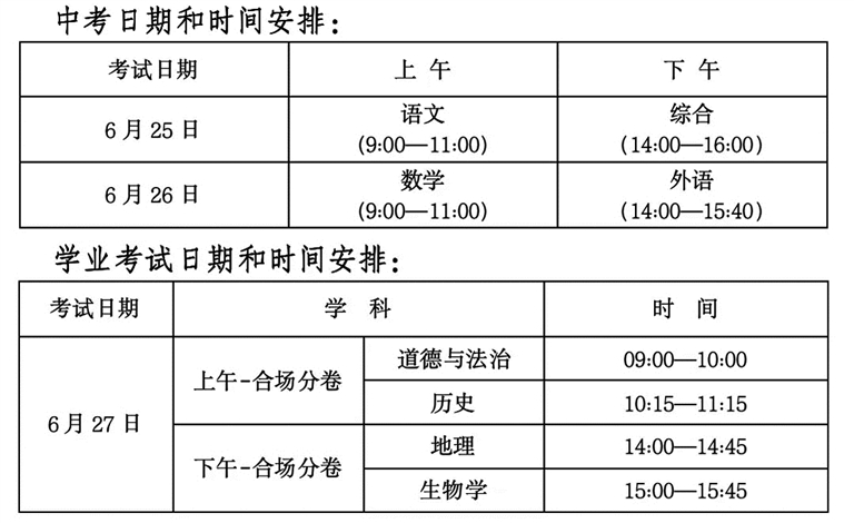 1.中考及学业考试实行全时制封闭管理,开考30分钟后,考生不准进入考点参加当次科目考试,考试结束考生方可交卷出场。