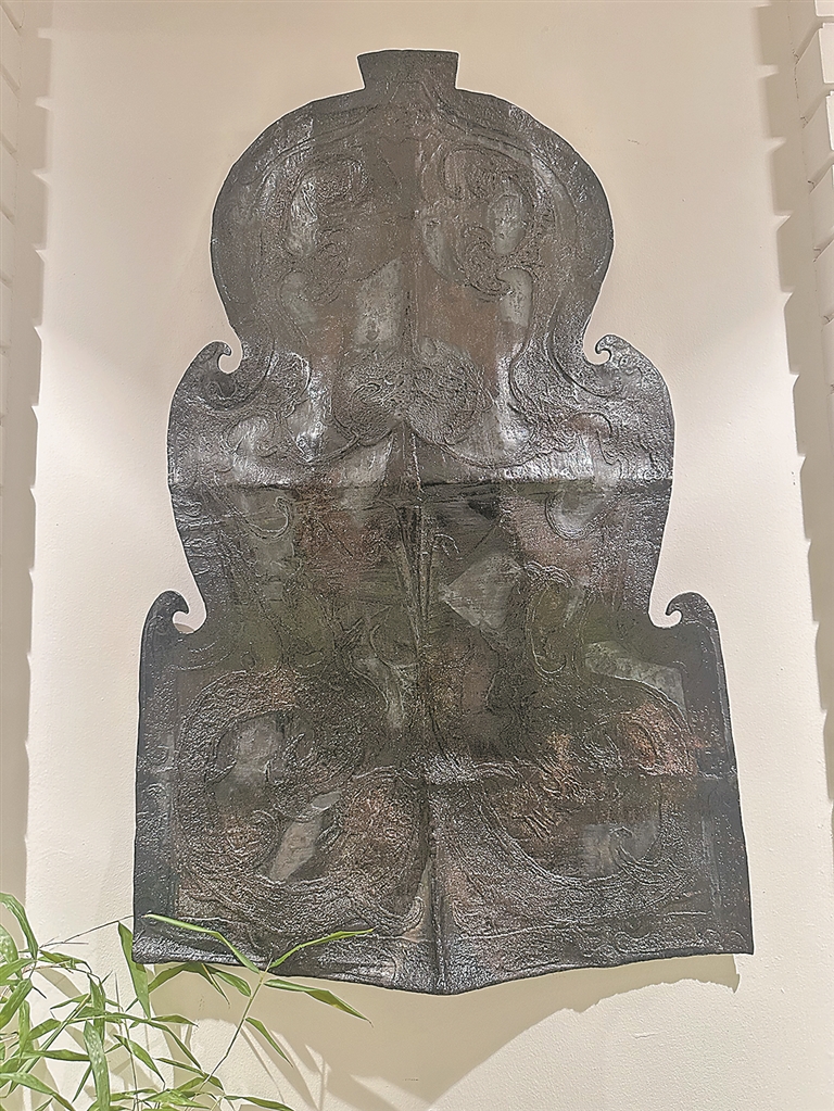 创作过程中,他追求的不只是外形相似,更希望赋予作品多重的感官体验——远看要有青铜金属般的深邃厚重感;摸上去要像皮具般温润柔韧;拿起来则要如纸胎般轻巧。历经一年的精雕细琢,一件融合了堆漆、雕漆龙纹装饰的漆艺盾牌终于完成。成品的效果出乎了他的意料,不仅达到了触感与视觉的双重目标,更散发出一种令人屏息的远古威严。