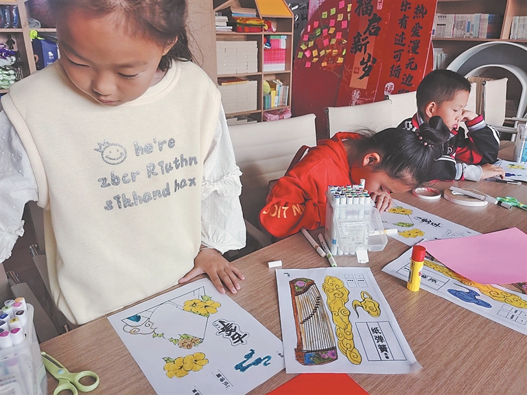 在五常市拉林满族镇“童心港湾”,多媒体屏上,战国时期的古筝拓片与现代演奏视频交叠闪现,一场与古筝相关的创意绘画活动正热闹开展。孩子们围坐在桌前,对着古筝线稿图以及视频,用画笔为传统乐器注入童真色彩。志愿者俯身指导,从古筝的历史韵味聊到色彩搭配巧思,在孩子们笔下,原本古朴的古筝琴身,跃出粉红、明黄等明快色调,琴弦间流淌出想象的音符。