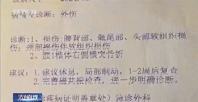 李女士事发时,刚在餐厅用完餐,一边低头看手机一边向外面走去。就在她走到餐厅外的台阶区域时,李女士一脚没有踩稳而失去平衡,整个人顺着台阶摔下去。摔倒后,她先是坐了几秒钟,然后自己站起来离开了现场。当时,李女士并没有在意,但隔了数日,她身上的疼痛感依然不减,于是前往医院就诊,结果被诊断为腰椎右侧横突骨折。