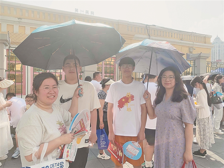当日7时30分许,记者来到哈尔滨市第一中学考点,现场的工作人员已准备就绪,考生、陪考家长、老师陆续到达考点。记者在现场发现,送考家长和老师都显得有些内敛,心态比较淡定。当天气温较高,烈日下,不少家长默默地为孩子撑伞;有的家长则用扇子给孩子扇风。“小胖过来,妈妈给你们撑伞,咱们4个合个影,祝你俩考试成功!”两名家长用这样的方式给孩子加油鼓劲。