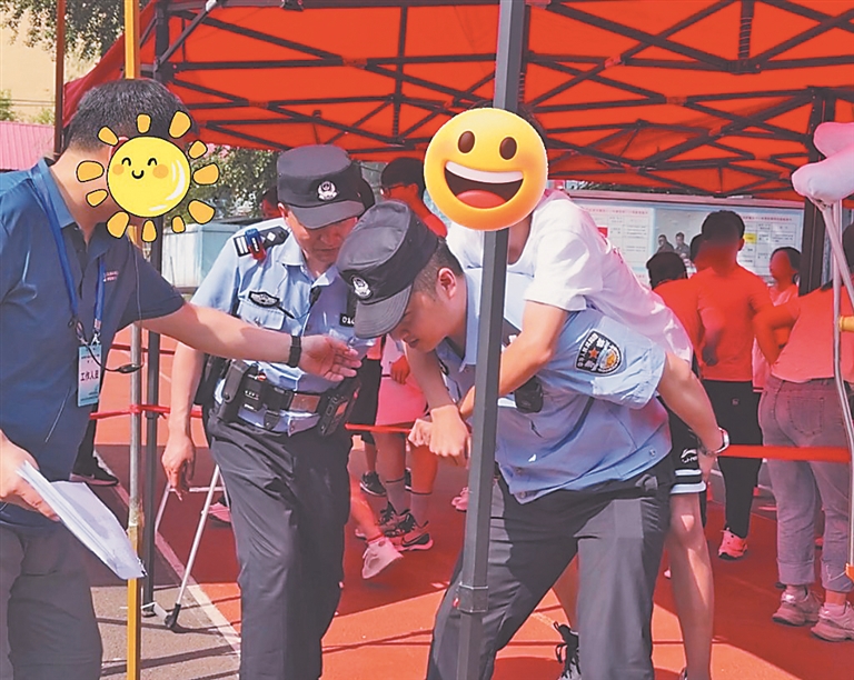 “孩子我来背,爸爸帮忙拿着拐,咱们走,可别耽误孩子考试!”建国街派出所辅警陈鹏见状,一个箭步冲上前蹲下身子,他稳稳地将考生背起迈开大步,朝着考场方向快速奔去。一路上,他小心翼翼又争分夺秒,最终将考生平安送至考场。