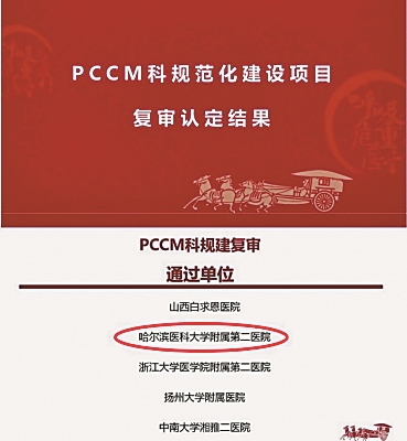 呼吸与危重症医学(PCCM)科规范化建设项目,是由中国医师协会呼吸医师分会、中华医学会呼吸病学分会、全国呼吸专科医联体、国家呼吸医疗质量控制中心共同发起的专科规范化建设项目。该项目旨在从建制、设施、人员、业务能力、管理、文化等多方位设立学科建设标准,推动全国呼吸学科的规范化、同质化发展,为医疗业务开展和人才培养提供良好的科室平台,进一步提升我国呼吸与危重症医学整体水平。2018年,哈医大二院成功通过国家首批PCCM科室规范化建设评定,并获得三级优秀单位荣誉称号。
