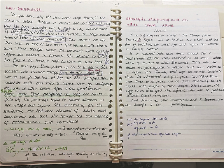 英语131分的成绩单背后,藏着300多页作文本的墨香。从高一的青涩到高三的从容,小瑞用最朴素的坚持书写逆袭之路。每一篇作文都反复雕琢,每一个语法错误都被红笔圈出,那些被翻阅得卷边的笔记本,记录着他对知识最虔诚的探索。同学眼中“笨拙”的积累方式,在他看来却是通往梦想的阶梯。口袋里的单词条、贴满便利贴的语法书,还有随身携带的错题本,构筑起属于他的知识堡垒。“就像熬汤药一样,学习也要小火慢炖。”他总这样比喻,将枯燥的学习过程化作诗意的坚守。