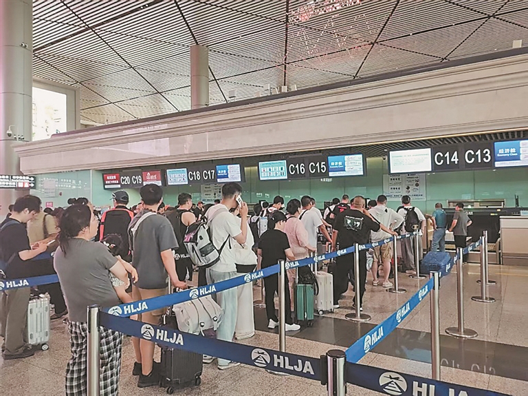 黑龙江机场集团市场营销部负责人表示,从7月1日起,哈尔滨机场预计日均运送旅客量达7.6万人次左右,日均保障航班500余班,相比4、5月日均架次增长约三成。