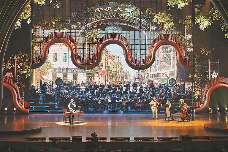 开幕式上,一场由哈尔滨市与保利文化集团联袂打造、著名指挥家汤沐海执棒的艺术盛宴震撼上演。演出由北京保利文化集团艺术总监周涛担任总导演,分为“乐满丁香咏芳华”“情寄丹心颂山河”“和合万象谱新章”三个华美篇章,汇聚了哈尔滨交响乐团、哈尔滨芭蕾舞团、哈尔滨歌剧院合唱团、哈尔滨音乐学院合唱团等专业院团的百余位艺术家。著名歌唱家殷秀梅、吕继宏、陈思思、郭蓉、尤泓斐,著名表演艺术家王刚,哈尔滨籍歌手孙悦等倾情献艺,为观众奉上高水准的艺术享受。演出高潮之一是原创音乐剧《夜幕下的哈尔滨》片段的首次公开展演,浓郁的地域特色和精湛的艺术呈现赢得了现场经久不息的掌声。整场演出融合交响乐、芭蕾舞、声乐、戏剧等多种艺术形式,气势恢宏、精彩纷呈,淋漓尽致地展现了哈尔滨深厚的艺术积淀和开放包容的城市气质,为与会嘉宾和观众带来了一场难忘的视听盛宴。