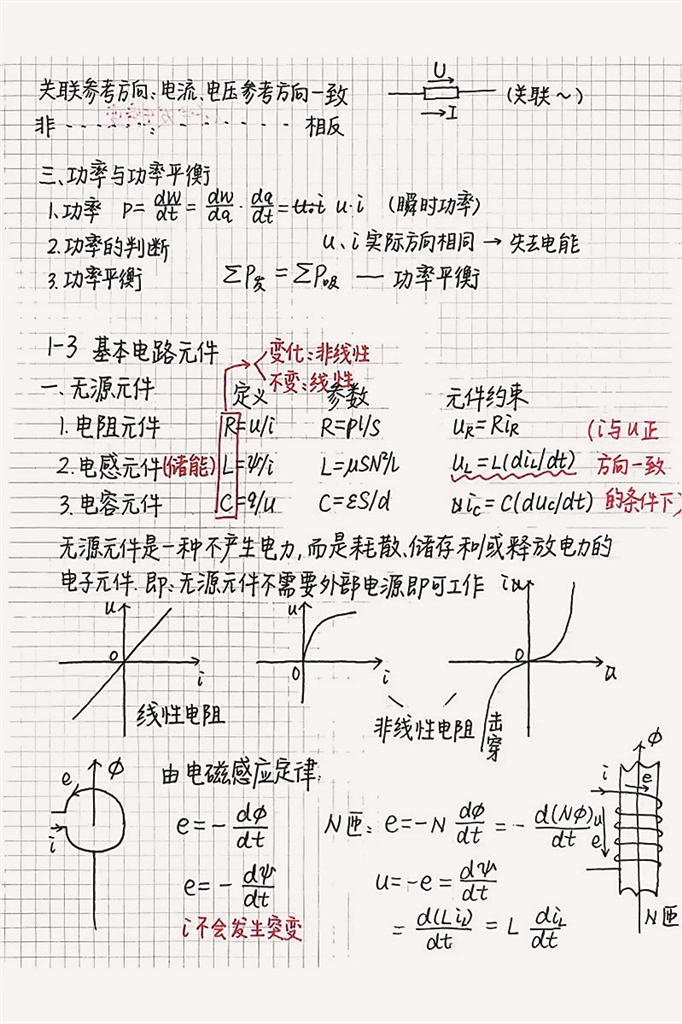 刚接触电工课堂的我,不知道该如何学好这门课,于是采取了最基本、可能也是最笨拙的一种方法——记课堂笔记。我每节课都会尽量在保证跟上老师讲课进度的同时,把知识要点记录下来。后来发现这种最笨拙的方法,能够很好地帮助我理解这门课,每个知识点都很清晰地排列在笔记本上,期末复习也更加省力。