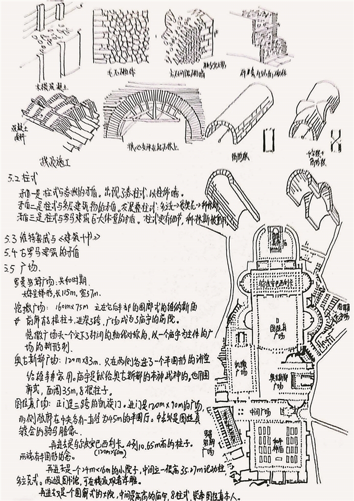 在抄绘外国古代建筑史课程笔记时,我逐渐摸索出一套“图像+逻辑”的记录方式。面对庞杂的希腊柱式、哥特飞扶壁或伊斯兰穹顶,我会先用铅笔勾勒建筑主体轮廓,标注比例尺度,最后在留白处用文字记录下关键信息。这个过程中最困难的不是技法,而是从图纸背后解读古人的设计智慧。