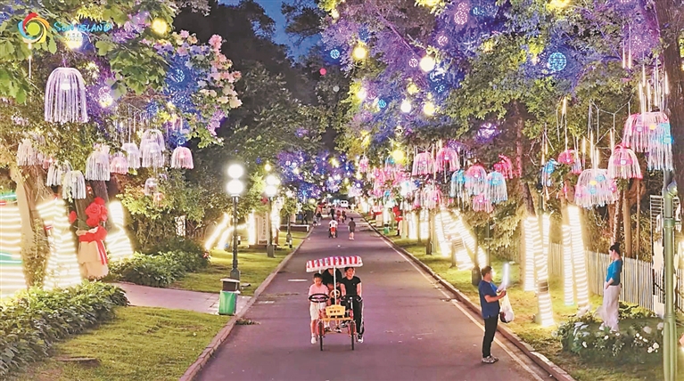 生活报讯 (记者王伟健) 记者了解到,自哈尔滨太阳岛夜公园25日正式开启后,大批游客趁着夜色进岛游览,感受到了夜晚太阳岛独有的魅力。夜幕降临后灯光亮起,太阳岛风景区瞬间变成流光溢彩的梦幻世界。今夏,太阳岛景区以夜游为出发点,挖掘景区自然生态禀赋,通过现代科技手段模拟出如梦似幻的景象,为游客带来神秘、浪漫且具有科幻色彩的夜间游览体验。
