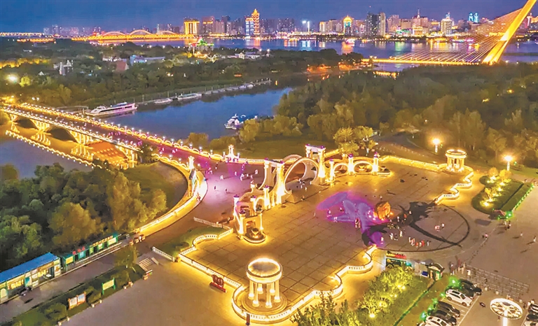 在太阳岛临江街步行街,每天16时都会上演《遇见·哈尔滨》巡游表演。身着绚丽多彩民族服饰的表演者和来自俄罗斯的演员们载歌载舞,与游客亲密互动,让人感觉仿佛穿越到了异国他乡。茶余饭后、周末休假时,不妨放下忙碌,约上亲朋好友,一同走进太阳岛夜公园,邂逅一场浪漫的夏夜之旅,收获一段难忘的美好回忆。